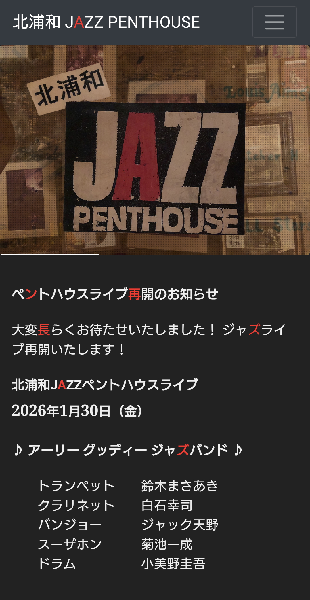 | 26日 | 薗田憲一とデキシーキングス 浅草HUB ミュージックチャージ 3,300円 |